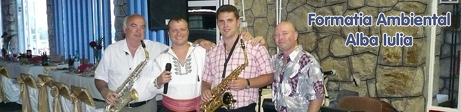 Formatia Ambiental din Alba Iulia, infiintata in anul 1999,practica un repertoriu de bun gust,imbinand mai multe genuri muzicale:muzica de petrecere si folclor;muzica usoara romaneasca si internationala; muzica ambientala si cafee-concert.Manelele se canta doar in cadrul petrecerilor de acest gen si la nuntile care prefera si acest gen muzical. Formatia Ambiental din Alba Iulia va ofera o muzica de calitate pentru cele mai frumoase momente din viata dumneavastra. Alaturi de noi, nunta,botezul sau petrecerea dumneavoastra va fi de neuitat. Echipa noastra poate fi acum oriunde si oricand alaturi de dumneavoastra in organizarea unui supereveniment.Cu o experienta de peste 10 ani si peste 250 de evenimente organizate va stam la dispozitie cu o gama variata de servicii-de la concerte in aer liber,spectacole si evenimente corporate pana la evenimente de familie, nunti, botezuri sau aniversari. Colaboram cu toti artistii cunoscuti din judetul Alba si vecinatati.Printre serviciile artistice pe care le oferim amintim cateva:Solisti de muzica populara;Solisti de muzica usoara;Solisti de manele; Formatii de muzicanti;Sonorizari profesioniste;D.J. Echipa AMBIENTAL ofera o gama larga de servicii artistice, atat pentru persoanele fizice cat si pentru persoanele juridice sau administratia publica locala si centrala